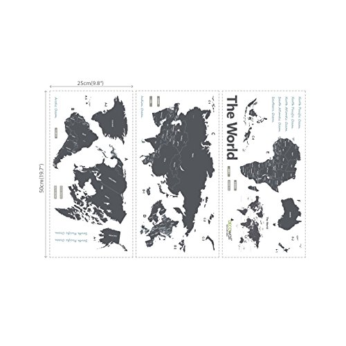 DECOWALL DWL-1609GS Mondo Mappa Moderno Grigio(Medio)(Ver. Inglese) Adesivi da Parete Decorazioni Stickers Murali Soggiorno Asilo Nido Camera Letto