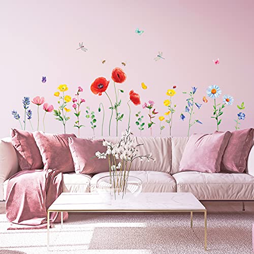 DECOWALL SG-2103 Fiori Adesivi da Parete Farfallei decorazione Fiore Muro Stickers Murali Soggiorno Camera Letto per Bambini Murale