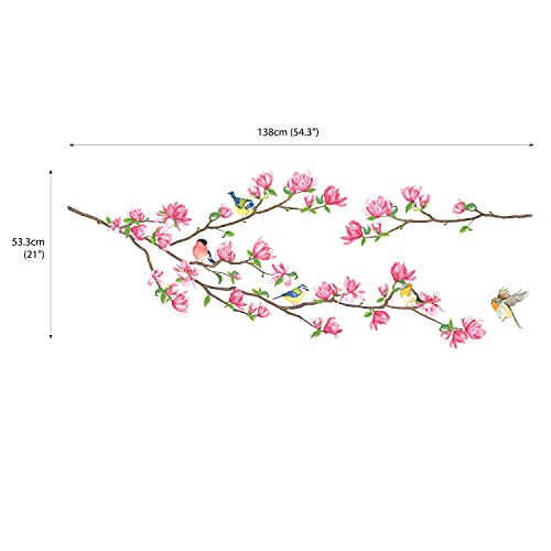 DECOWALL SG-2117 Ciliegio Uccelli Albero Adesivi da Parete ramo di magnolia rosa Murali Decorazione per Camera Letto Soggiorno Bambini Murale DIY