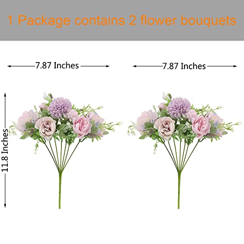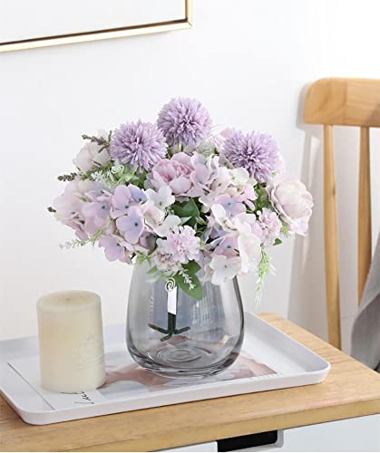 Decpro 2 Pezzi Peonia Artificiale Seta Ortensie Crisantemo Garofani Tutti Mazzi di Fiori per Matrimonio, Home Office Decorazione del Giardino, Centrotavola, Composizioni Floreali, viola