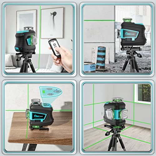 DECTEAM 4 x 360 Linea Laser Croce, Verde Autolivellante Orizzontale e Verticale quattro Linee Laser a 360° con Telecomando, IP54, Batteria agli Ioni di Litio e Base Girevole Regolabile Inclusa DJ04CG
