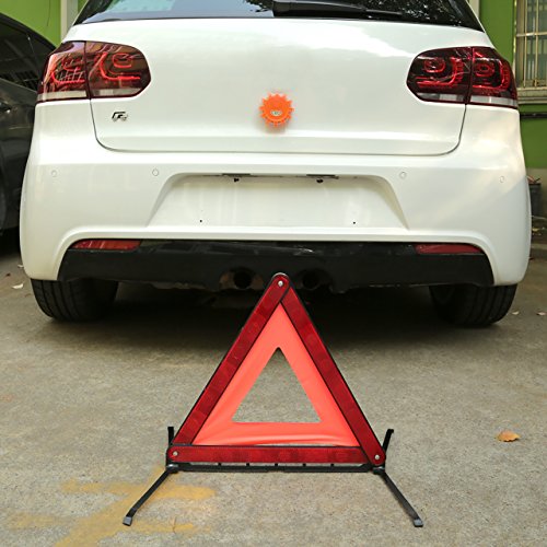 Questo kit prodotto è composto da: 2 Triangoli di emergenza pieghevoli e 1 luce di emergenza bicolore e 1 gilet di sicurezza riflettente.