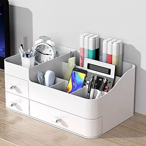 DEDC 1 pz Organizzatore Multifunzione da Scrivania, Organizzatore Trucchi, Contenitore Cosmetici, Portatrucchi per Ombretti, Correttori, Polveri, Smalto per Unghie, in Plastica Bianco (L)
