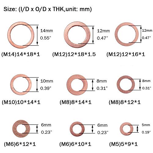 DEDC 1 Set di 280 pz Rondelle Piatte in Rame Anelli Piatti Guarnizione Tappo di Scarico Olio con Scatola