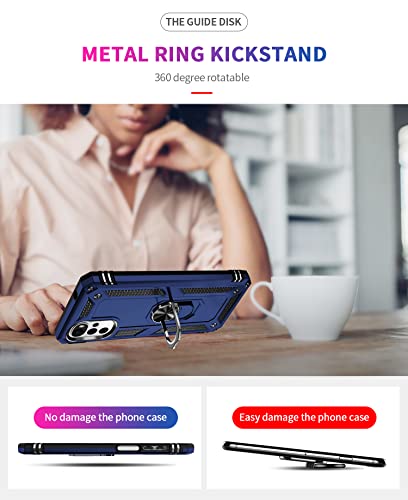 DEDUX Cover Custodia Compatibile con Motorola Moto G22 [Tough Armor Series] Robusto Pannello Posteriore PC AntiGraffio + Paraurti Antiurto TPU + Pratico cavalletto. Blu Navy