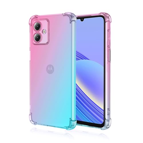 DEDUX Cover per Motorola Moto G14, Custodia Trasparente Gradiente Protettivo TPU Case, Ultra Sottile Rinforzo a Quattro Angoli Cover (Rosa/Verde)