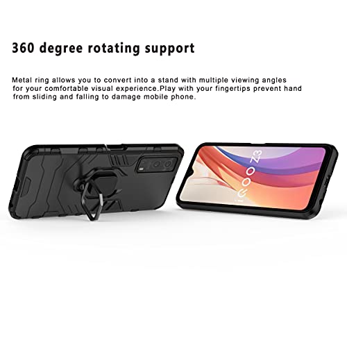 Dedux Custodia Cover + [2 Pezzi] Pellicola Protettiva per Vivo Y72 5G / Vivo Y52 5G, Supporto per Anello in Metallo [Supporto Magnetico per Auto] Vetro Temperato. Nero