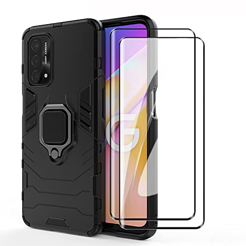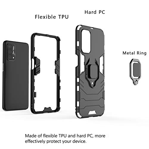 Dedux Custodia + 2 Pezzi Pellicola Protettiva per Oppo A54 5G / A74 5G, Supporto per Anello in Metallo [Supporto Magnetico per Auto] con Supporto ad Anello Custodia Cover. Nero