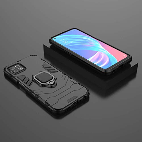 Dedux Custodia + 2 Pezzi Pellicola Protettiva per Oppo A73 5G, Supporto per Anello in Metallo [Supporto Magnetico per Auto] con Supporto ad Anello Custodia Cover. Nero