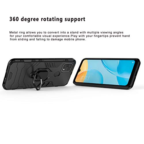 Dedux Custodia + 2 Pezzi Pellicola Protettiva per Oppo A15, Supporto per Anello in Metallo [Supporto Magnetico per Auto] con Supporto ad Anello Custodia Cover. Nero