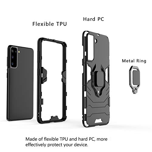 Dedux Custodia + 2 Pezzi Pellicola Protettiva per Samsung Galaxy S21 5G, Supporto per Anello in Metallo [Supporto Magnetico per Auto] con Supporto ad Anello Custodia Cover. Blu Navy