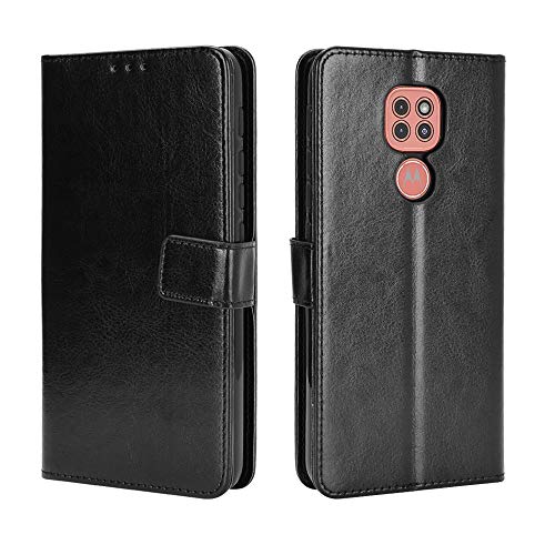 Dedux Portafoglio Custodia Cover Compatibile con Motorola Moto E7 Plus/Moto G9 Play, Cover per Biglietti da Visita in Pelle Retro con Chiusura Magnetica Premium Pu Flip, Nero con Cordino
