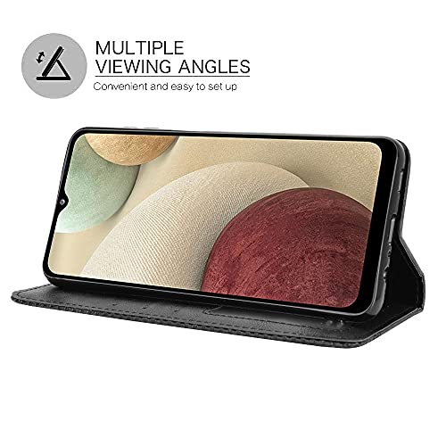 Dedux Portafoglio Custodia Cover Compatibile con Samsung Galaxy M32, Cover per Biglietti da Visita in Pelle Retro con Chiusura Magnetica Premium Pu Flip, Nero