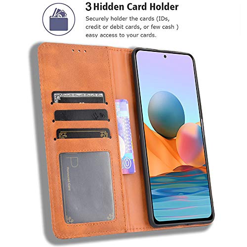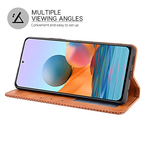 Dedux Portafoglio Custodia Cover Compatibile con Xiaomi Redmi Note 10 PRO (6.67"), Cover per Biglietti da Visita in Pelle Retro con Chiusura Magnetica Premium Pu Flip, Marrone