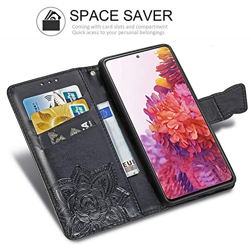 Dedux Portafoglio Custodia per TCL 20L Plus, Cover per a Farfalla con Fiore di Rosa in Rilievo [Funzione Stand] [Slot Cart] [Chiusura Magnetica]. Nero