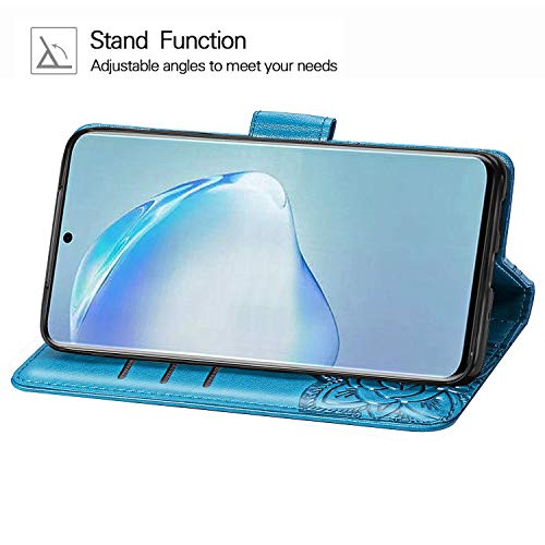 Dedux Portafoglio Custodia per Samsung Galaxy S20 Plus 5G, Cover per Custodia a Farfalla con Fiore di Rosa in Rilievo [Funzione Stand] [Slot Cart] [Chiusura Magnetica], Dotata di Cordino. Blu