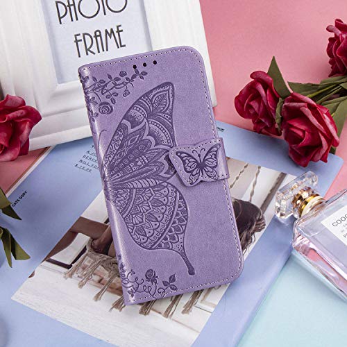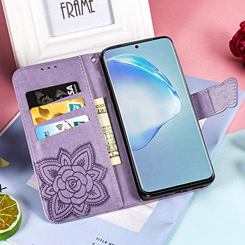 Dedux Portafoglio Custodia per Samsung Galaxy S20 Plus 5G, Cover per Custodia a Farfalla con Fiore di Rosa in Rilievo [Funzione Stand] [Slot Cart] [Chiusura Magnetica], Dotata di Cordino. Viola