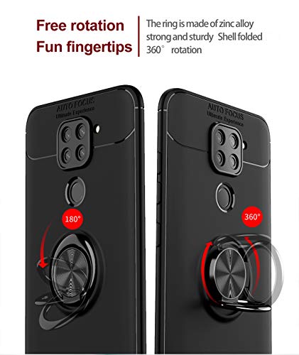 Dedux Silicone Morbido Cover per Xiaomi Redmi Note 9, Ultra Sottile Custodia Magnetica per Auto con 360 Rotante Supporto per Anello. Nero + Nero