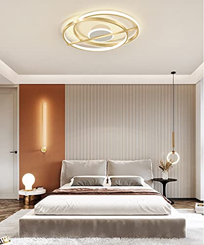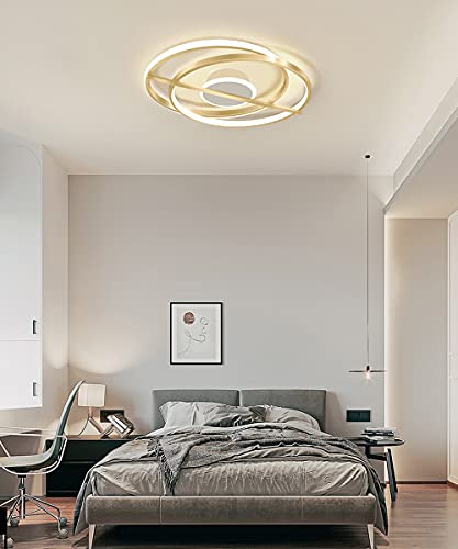 DEDVBJ Moderno Plafoniera LED Camera da Letto Soggiorno Lampada da Soffitto Dimmerabile con Telecomando Rotonda Creativo Oro Plafoniere Lampade per Balcone Corridoio Cucina Sala da Pranzo,Ø52cm 49w