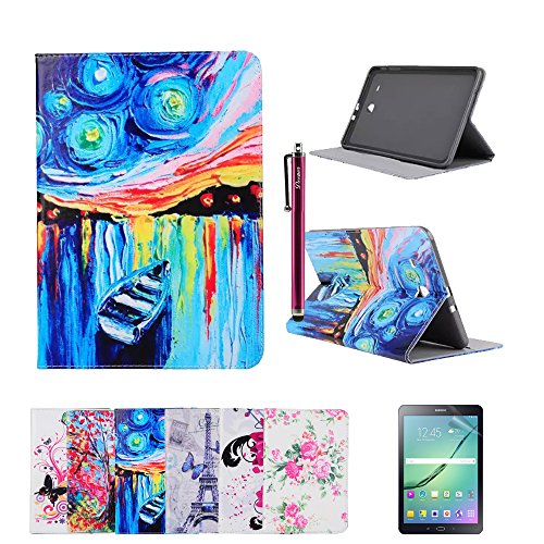 Deenor Custodia per Galaxy Tab E 9.6-inch SM-T560, Oil Painting Design Flip Custodia PU Pelle Stand Custodia Cover per Samsung Galaxy Tab E 9.6-inch SM-T560 / T561 / T565. (Whirlpool Boat)