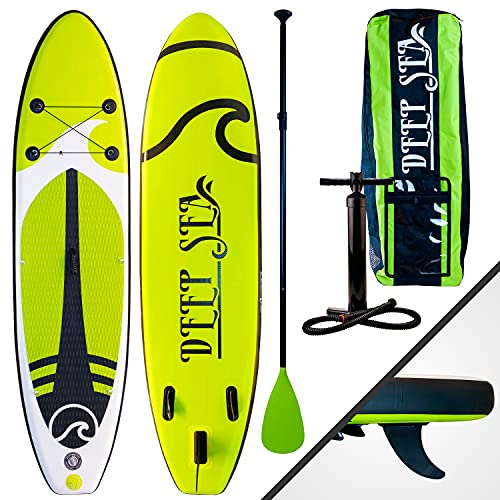 Deep Sea SUP Board PRO - Tavola Gonfiabile con Pompa, pagaia, Borsa per Il Trasporto e Kit di Riparazione, in Materiale dropstitch, Perfetta per Viaggiare, 300 x 76 x 15 cm, 0,8 Bar, Fino a 115 kg