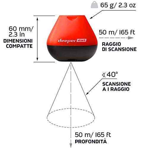 Deeper START Smart Fish Finder - Ecoscandaglio da Pesca Portatile, Ideale per Pesca Sportiva da Scogli, Riva o Spiaggia, Cerca Pesci da Lancio, Trova Pesci,Con App GRATUITA compatibile con Smartphone
