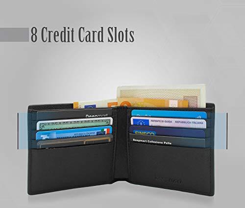 Deepmart Portafoglio Uomo in Vera Pelle Saffiano - 8 slot per carte di credito - 2 tasche per banconote - 2 tasche extra - Portafoglio Uomo Pelle Made in Italy