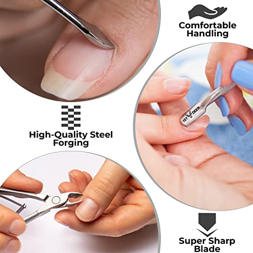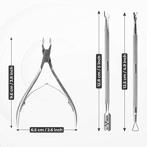 1st Deer Taglia Cuticole Set, 3 pezzi - Tronchesino per Cuticole, Spingi Cuticole e Forchetta, Forbici per Cuticole, Tagliaunghie e Raschietto, Strumento Manicure e Pedicure per Nail Art e Spa