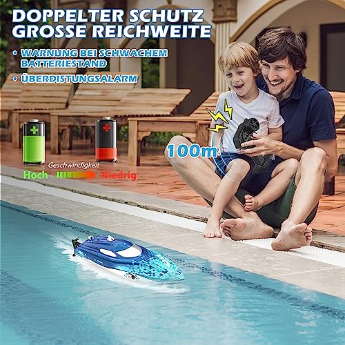 【Provate velocità e divertimento】 La barca radiocomandata ad alta velocità può facilmente raggiungere una velocità di oltre 32 km/h con il potente motore. Sbarazzati della noia e sperimenta la velocità e il controllo sull'acqua. Un'eccellente barca d'acqua telecomandata per bambini e adulti nella calda estate