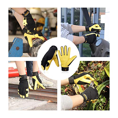 Deerskin - Guanti da lavoro in pelle per uomo e donna, elasticizzati, per meccanici, guanti da lavoro, guanti da lavoro, flessibili e traspiranti, taglia S, colore: giallo