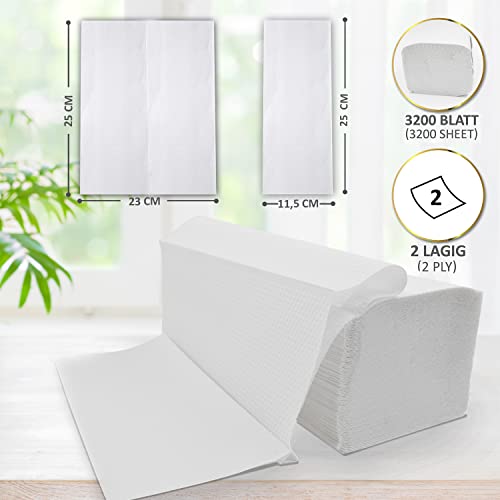 Defacto Asciugamani di carta, extra morbidi, 3200 pezzi, a zig-zag, 25 x 23 cm, per dispenser a 2 strati, colore: bianco