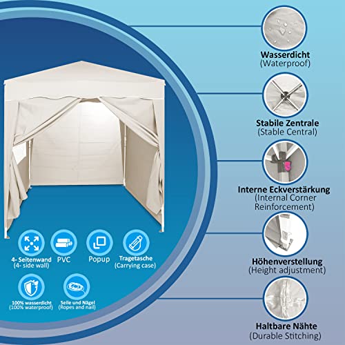 Defacto Gazebo da giardino, tenda pop-up per feste, gazebo pieghevole, 2 x 2 m, protezione UV 50+, 100% impermeabile, include 4 parti laterali, borsa per il trasporto con corde e picchetti (proprio)
