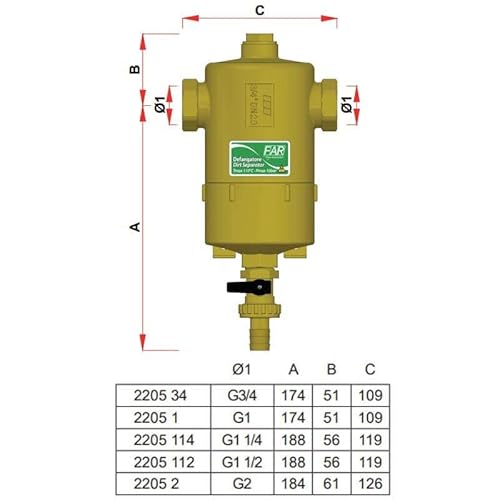 Defangatore Per Impianti Termici 1" Femmina-femmina Completo Di Magneti 2205 1 Far