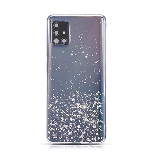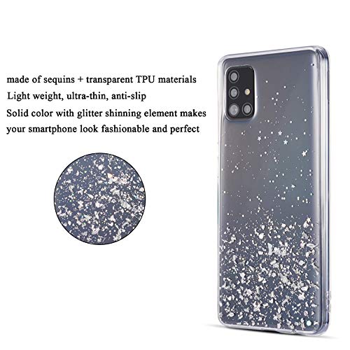 DEFBSC - Cover posteriore trasparente per Samsung Galaxy A51, con paillettes glitterate, in morbido TPU trasparente, antiurto, sottile, con paillettes, per Samsung Galaxy A51, colore: Bianco