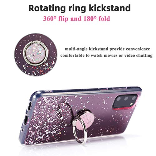 DEFBSC - Custodia per Samsung Galaxy S20 FE 5G con anello, glitter paillettes trasparente supporto anello di rotazione a 360° e cavalletto, in morbido TPU bumper telefono sottile posteriore rosa