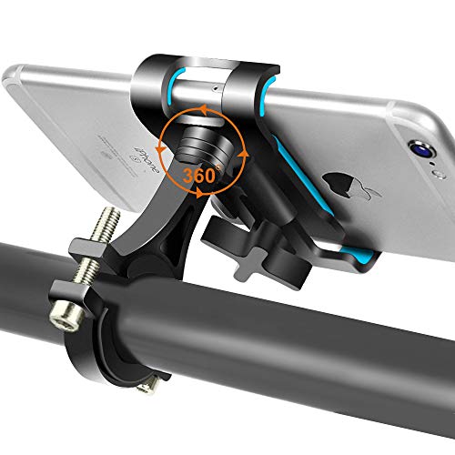 Rotazione stabile e a 360 gradi: Porta cellulare bicicletta realizzato in materiale in lega di alluminio, affidabile e durevole, ottima stabilità. Supporta la fissazione multiangolo, rotazione a 360 °, puoi cambiare liberamente l'angolazione del supporto telefono moto, offrendoti sicurezza e comodità.