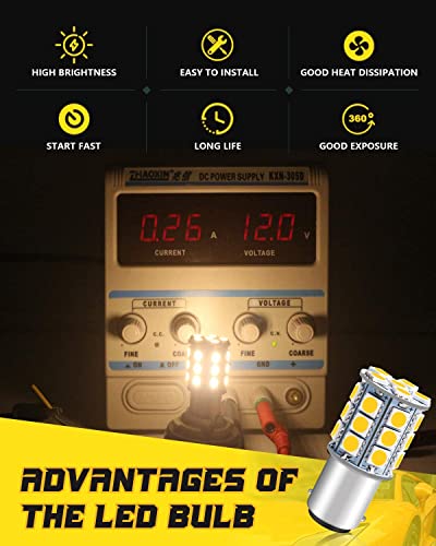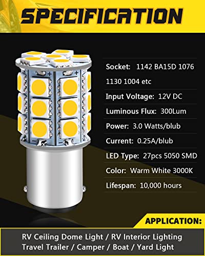DEFVNSY - Confezione da 10-1142 BA15D Lampadine LED Bianco Caldo 3000K 5050 27-SMD Lampade per interni 12V RV Camper Trailer Illuminazione Luce da cantiere Lampadine di coda dei freni