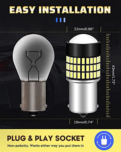 【Adatto per la presa】: interfaccia di base standard 1156 può adattarsi per 1003 BA15S P21W 1073 1095 1141 3497 5007 5008 7506 12088 ... ect. Facile da installare, basta plug and play. ✔ (Se non hanno lavoro, si prega di ruotarli di 180 gradi nel dispositivo e riprovare)