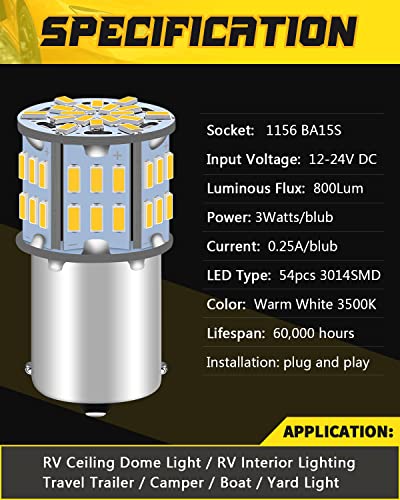 Defvnsy Lampadine LED Super Bright 3000K Bianco caldo 1156 BA15S 1141 1003 7506 54-SMD per luci di retromarcia 12V 24V, luci interne per auto/rimorchio/caravan P21W lampadine a LED (confezione da 4)