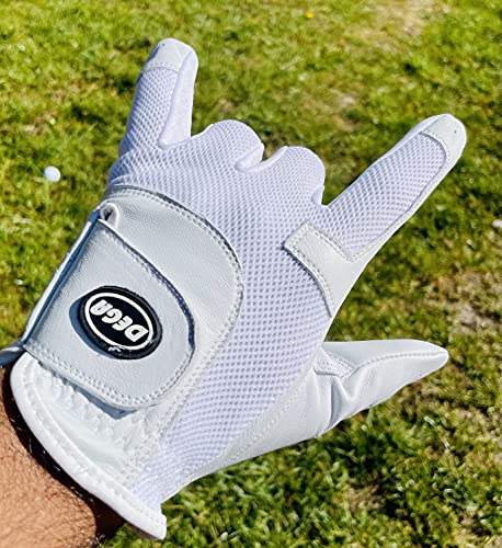 Dega Guanti da golf, confezione da 2 guanti da golf SuperFlex 100% pelle Cabretta, guanti da golf da uomo per mano sinistra morbida al tatto, presa d'aria (bianco, XL)