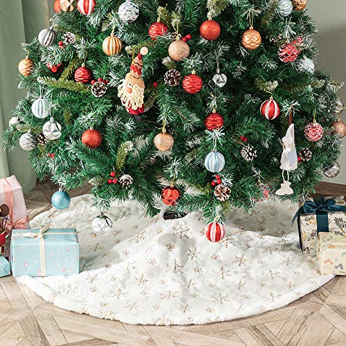 Deggodech 122cm Bianco Gonna Albero di Natale con Oro Paillettes Fiocchi di Neve Finta Pelliccia Gonne per Alberi di Natale Copertura della Base Albero Natale Festa Decorazioni (Oro, 48pollici)