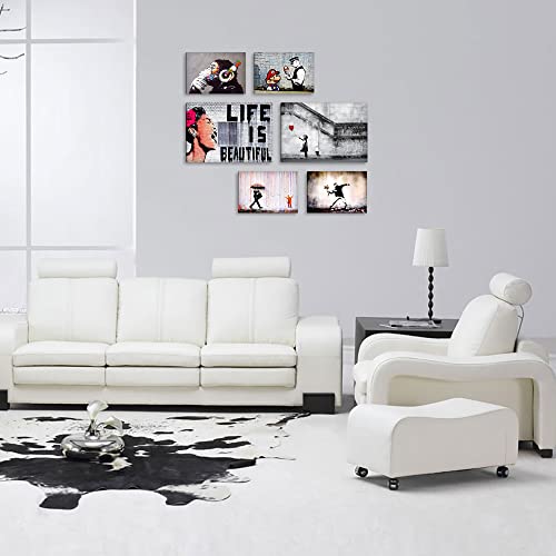 Degona Quadri Moderni BANKSY Set Composto da 6 pz. (2 pz. cm 40x30 + 4 pz. cm 30x20) Stampa su Tela CANVAS Arredamento Arte Astratto XXL Arredo per soggiorno salotto camera da letto cucina ufficio