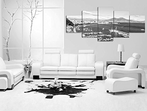 Degona Quadro Moderno NAPOLI B/N - 5 pz. cm 200x90 Stampa su Tela CANVAS Arredamento Arte Vesuvio XXL Arredo per Soggiorno Salotto Camera da letto Cucina Ufficio Bar Ristorante