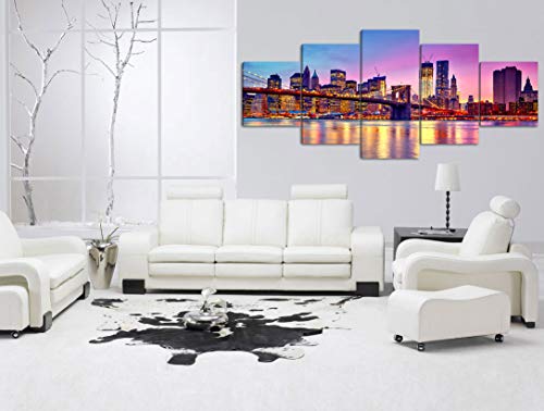 Degona Quadro Moderno NEW YORK SKYLINE 7 - 5 pz. cm 200x90 Stampa su Tela CANVAS Arredamento Arte Arredo Manhattan XXL