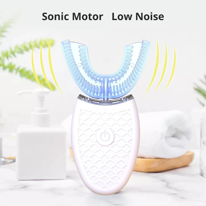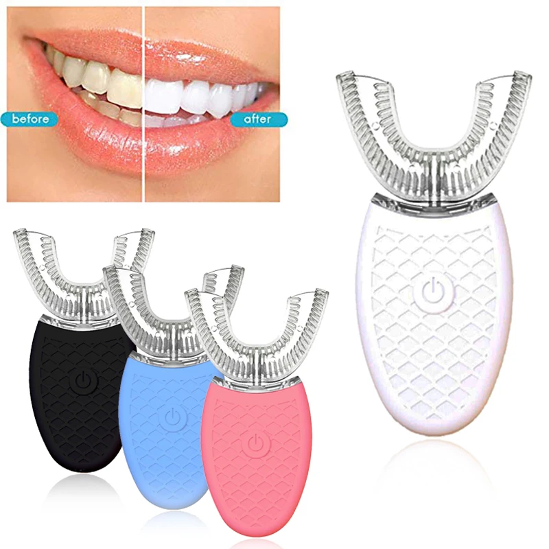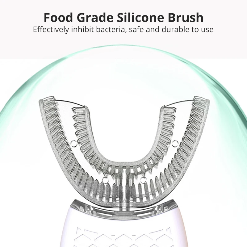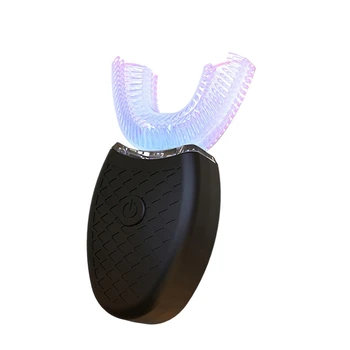 360 Degrees U Type Automatic Electric Toothbrush High Frequency Ultrasonic Vibration Blue Light Whiten Teeth Silicone Brush Head