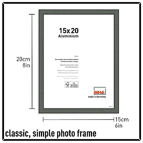DEHA Design Cornice per Ritratto in Alluminio, Set di 3 cornici Boston, 15x20 cm, Contrasto Grigio