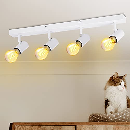 Dehobo Faretti da Parete Interno Orientabili, Lampada Soffitto con 4 Faretti, non Inclusa Lampadina E27, Max. 60W (E27 singolo), Faretto Led da Interno per Soggiorno, Corridoio, Entrata o Scale