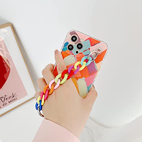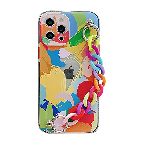 DEIOKL Custodie per telefoni con Bracciale Graffiti per iPhone 12 PRO Max 11 promax X XS XR 7 8 Plus SE 2020 Cover Posteriore Morbida con Catena Colorata, A, per iPhone 12ProMax