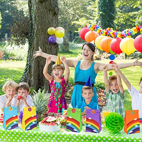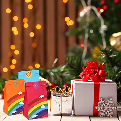 Dekewe 24 Pezzi Sacchetti Regalo di Carta, Sacchetti Regalo Compleanno con 24 Adesivi, Sacchetti Carta Colore per Bambini Feste, Sacchetti Carta Regalo per Compleanno Matrimonio Natale