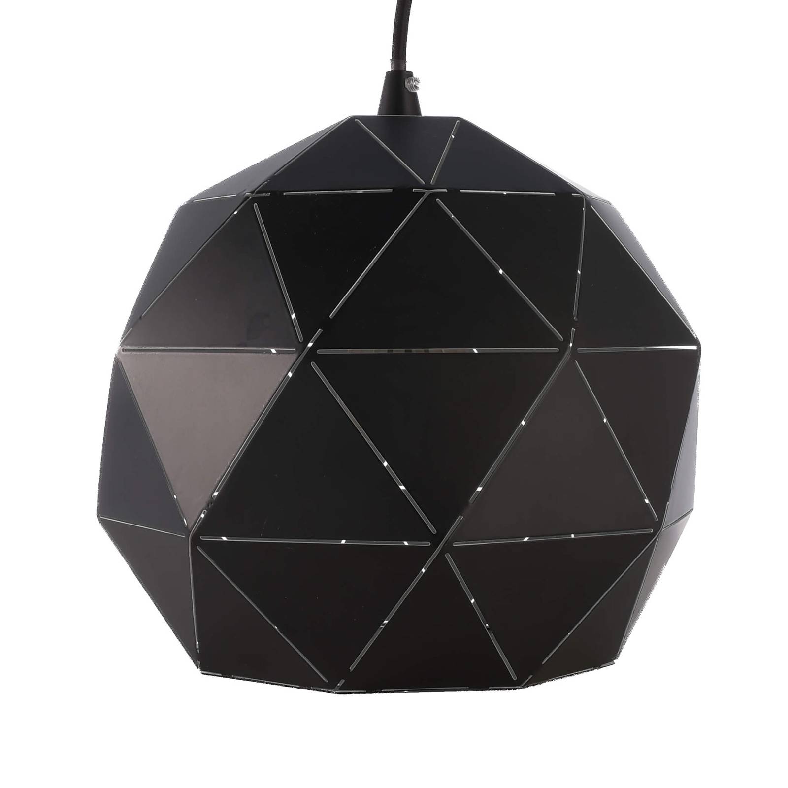 Sfaccettato gioco di luce - apparecchio a sospensione Asterope di forma sferica La moderna lampada a sospensione Asterope è dotata di un paralume in metallo di forma sferica. Questo ha anche dei bordi leggeri, che sono creati dalle aperture in forma triangolare. Attraverso queste fessure, la luce può sfuggire in modo impressionante e crea così un bel gioco di luce nella stanza, oltre all'illuminazione diretta verso il basso. Così, Asterope può essere utilizzata come lampada a sospensione, per esempio, in soggiorno, in sala da pranzo sopra il tavolo o anche in camera da letto. In ogni caso, la lampada moderna arricchisce ogni stanza con un ambiente stravagante.